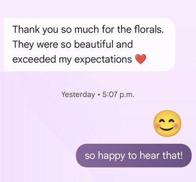 Your arrangements were a huge standout at the wedding and we got so many compliments. You executed exactly what I envisioned and we are so happy.